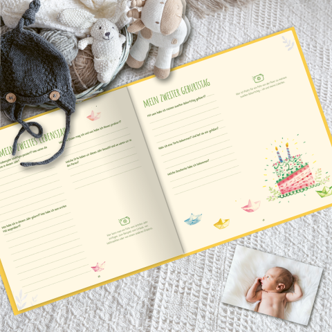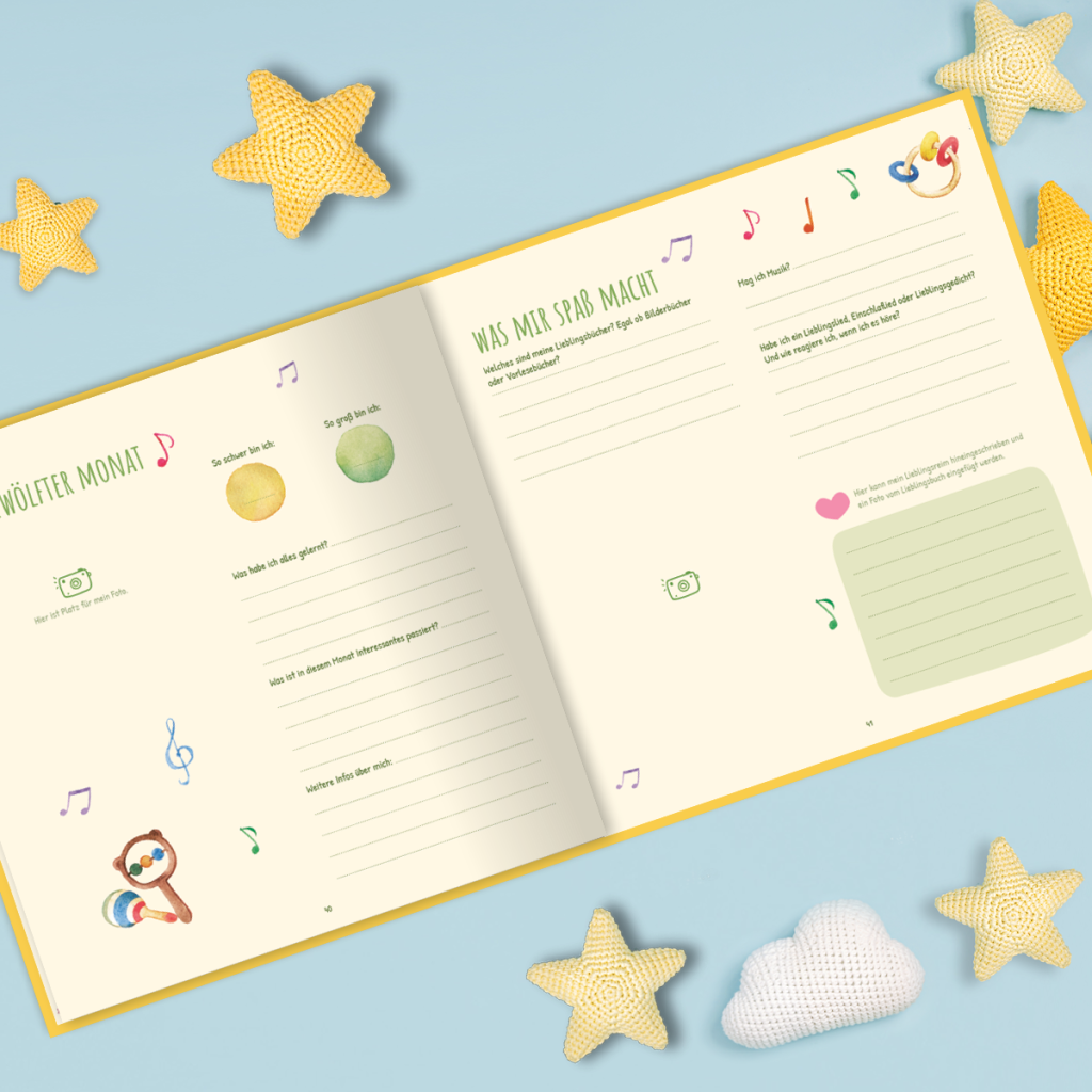 Das Buch ist voller Erlebnisse, Entdeckungen und Erfahrungen. Und bietet daher auch Platz, die nächsten Lebensjahre des Nachkommen bis zu seinem achtzehnten Geburtstag festzuhalten.